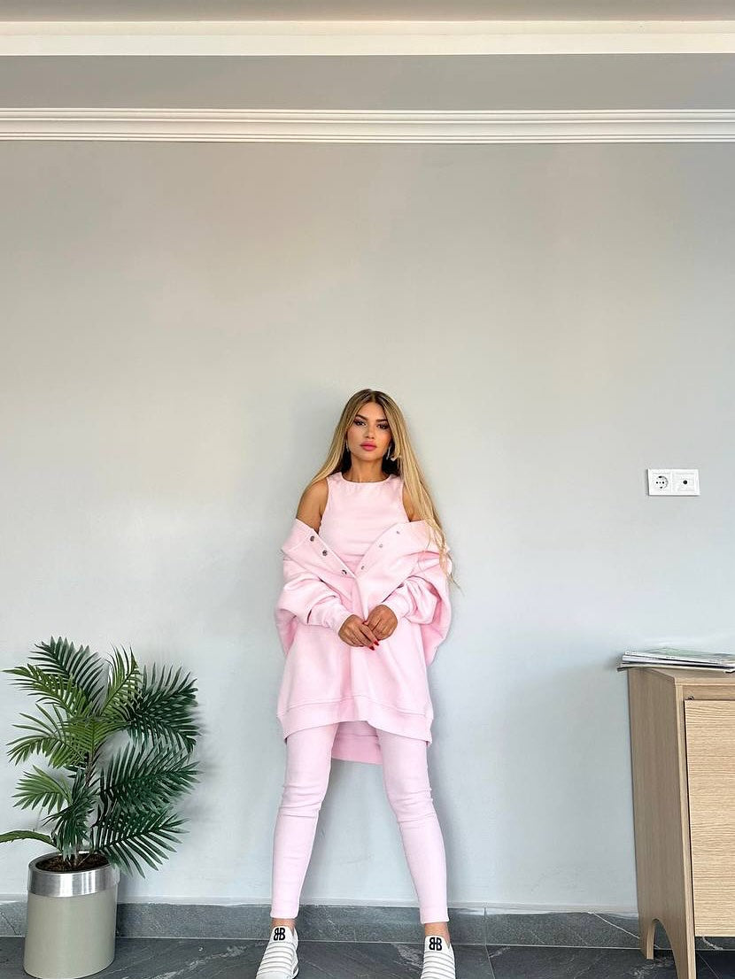 Découvrez notre ensemble 3 pièces, alliant style et confort pour toutes vos activités ! Ce set comprend un sweat tendance, un débardeur chic et un pantalon slim qui mettront en valeur votre silhouette tout en vous offrant une liberté de mouvement inégalée.